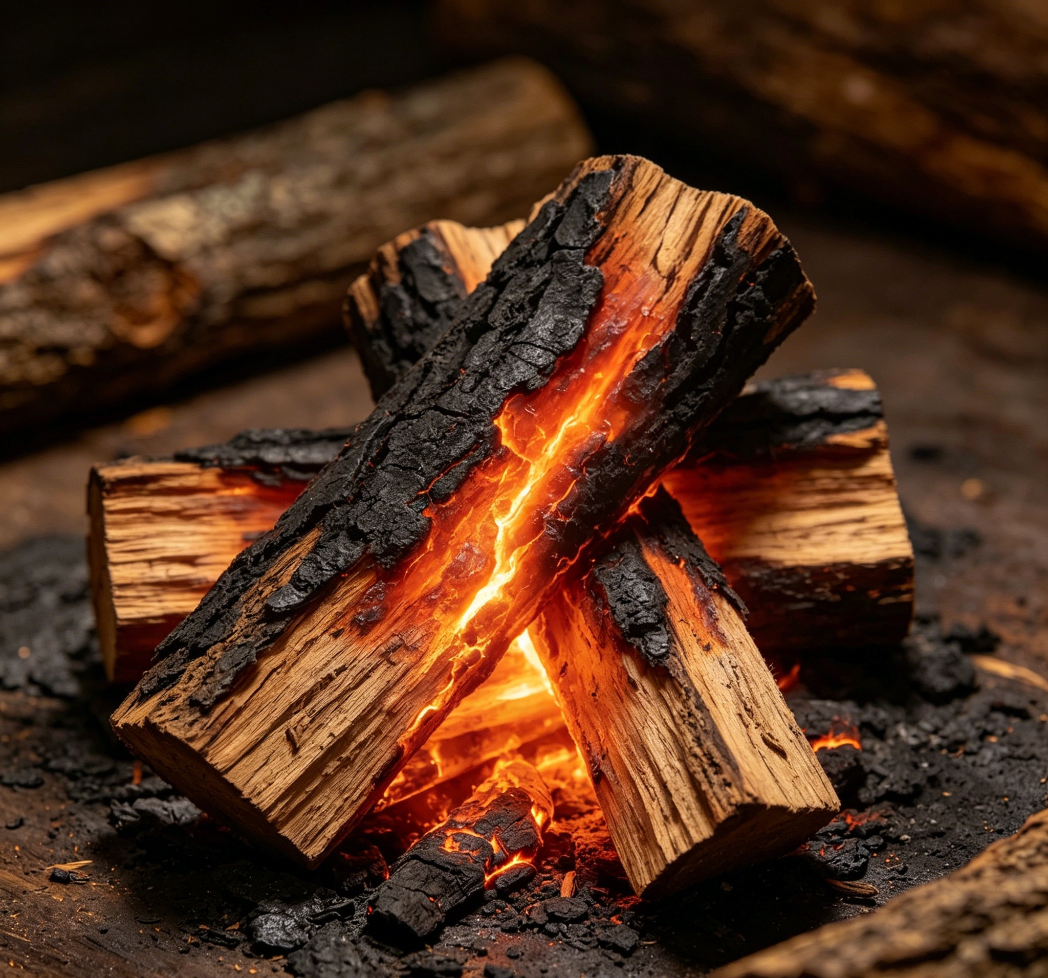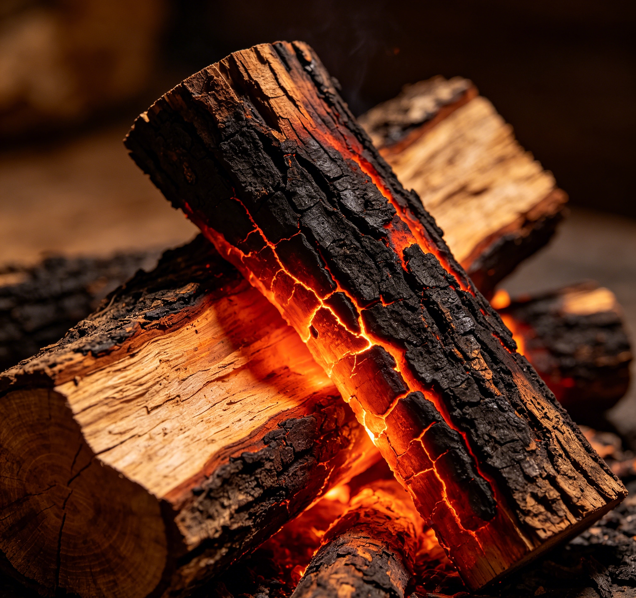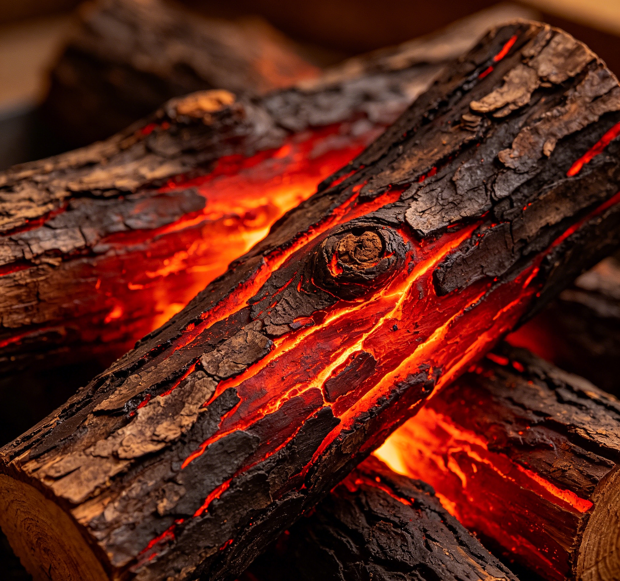 Our simulated oak firewood, crafted by professional artisans, perfectly captures the sturdy texture and natural tones of real oak wood. Made from premium resin, it looks highly consistent with genuine oak logs and provides excellent heat resistance—ideal for high-end electric fireplaces. Each log is hand-painted to reproduce the rich wood grain, rugged bark, and natural charred details. Paired with LED glowing embers, it creates a lifelike, warm and classic ambiance while ensuring outstanding durability and safety.
